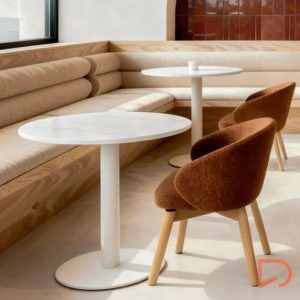 La silla VIRGINIA es la definición de calidez moderna. Su diseño envolvente y acogedor se alza sobre unas elegantes patas de madera de haya, cuya tonalidad natural añade un toque orgánico y atemporal al conjunto.