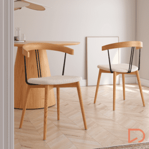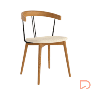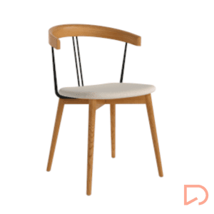- Ofrece acabados en tono roble y el asiento tapizado en tono nácar o lamb.