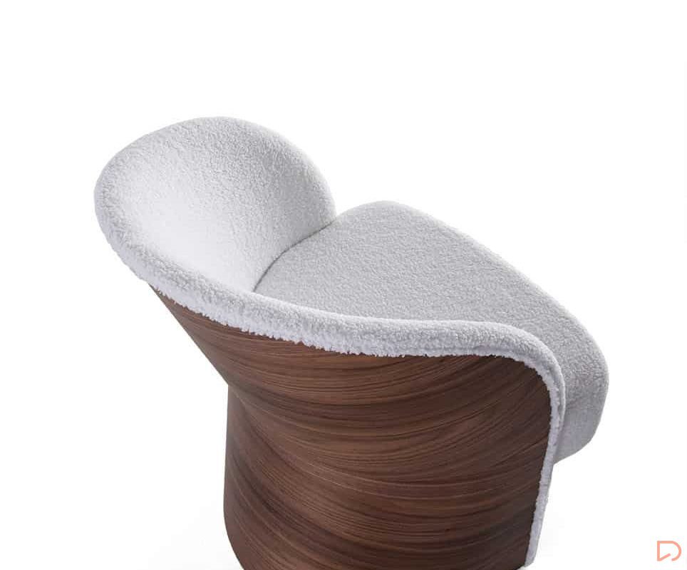 - En tapizado su diseño distintivo combina un respaldo y laterales curvados en madera con un cómodo asiento tapizado en tela de alta calidad, disponible en varios colores. Este sillón no solo ofrece un estilo único, sino también un confort excepcional, ideal para salones, oficinas y áreas de recepción.