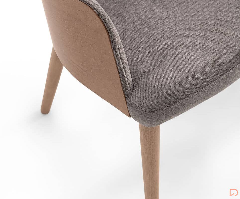 - Este sillón ofrece una estética suave y adaptable a cualquier decoración. Las patas de madera natural añaden un toque clásico y robusto, mientras el diseño del respaldo y el asiento aseguran soporte y confort.