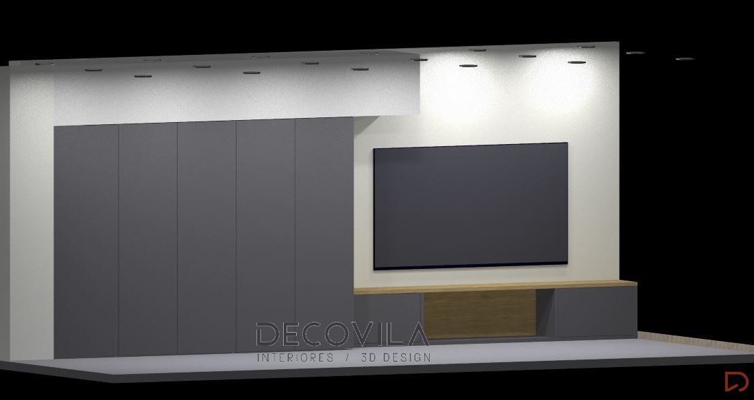 - Zona audiovisuales, con bajo Tv, para albergar equipo de sonido y consolas de juegos, con chimenea eléctrica decorativa integrada.