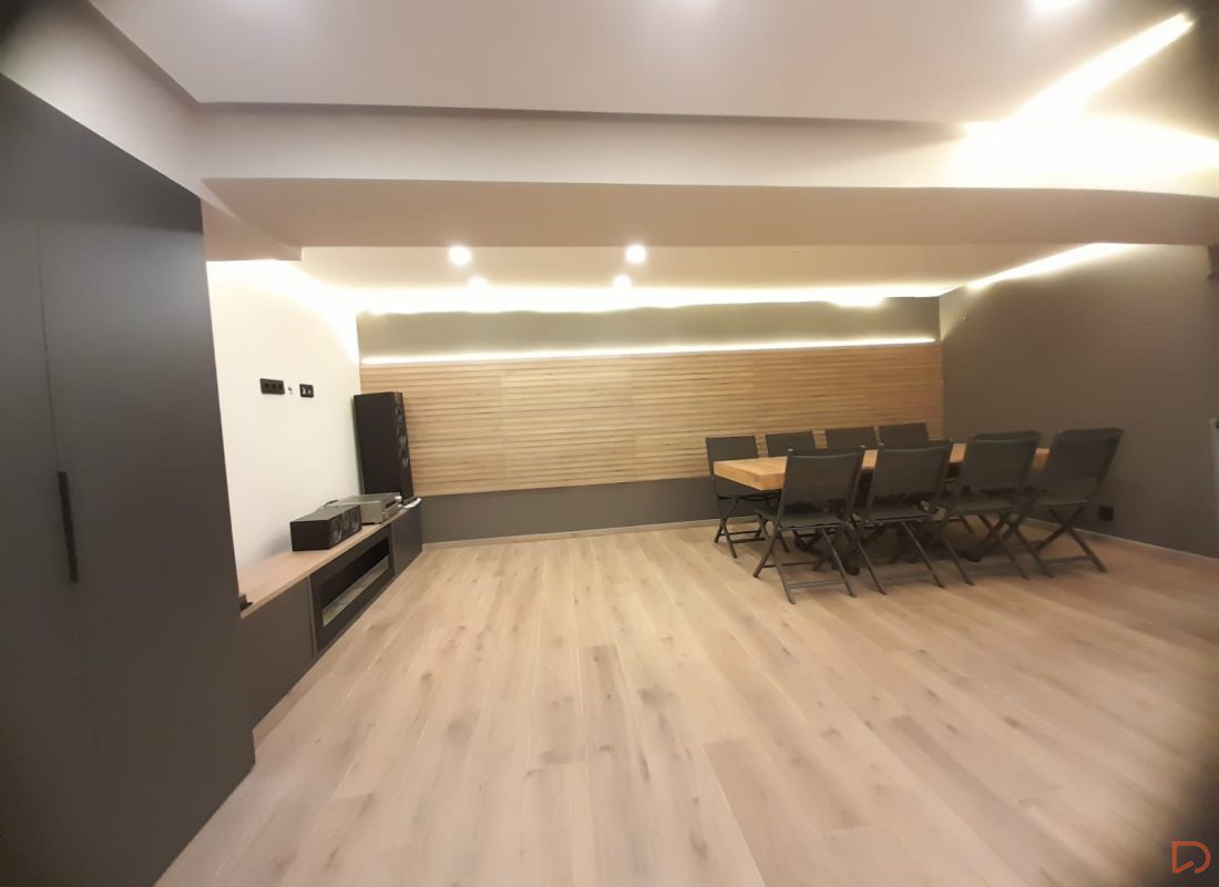 Nuestro cliente nos solicito un diseño para este sótano multifuncional, en el que definimos varias zonas: