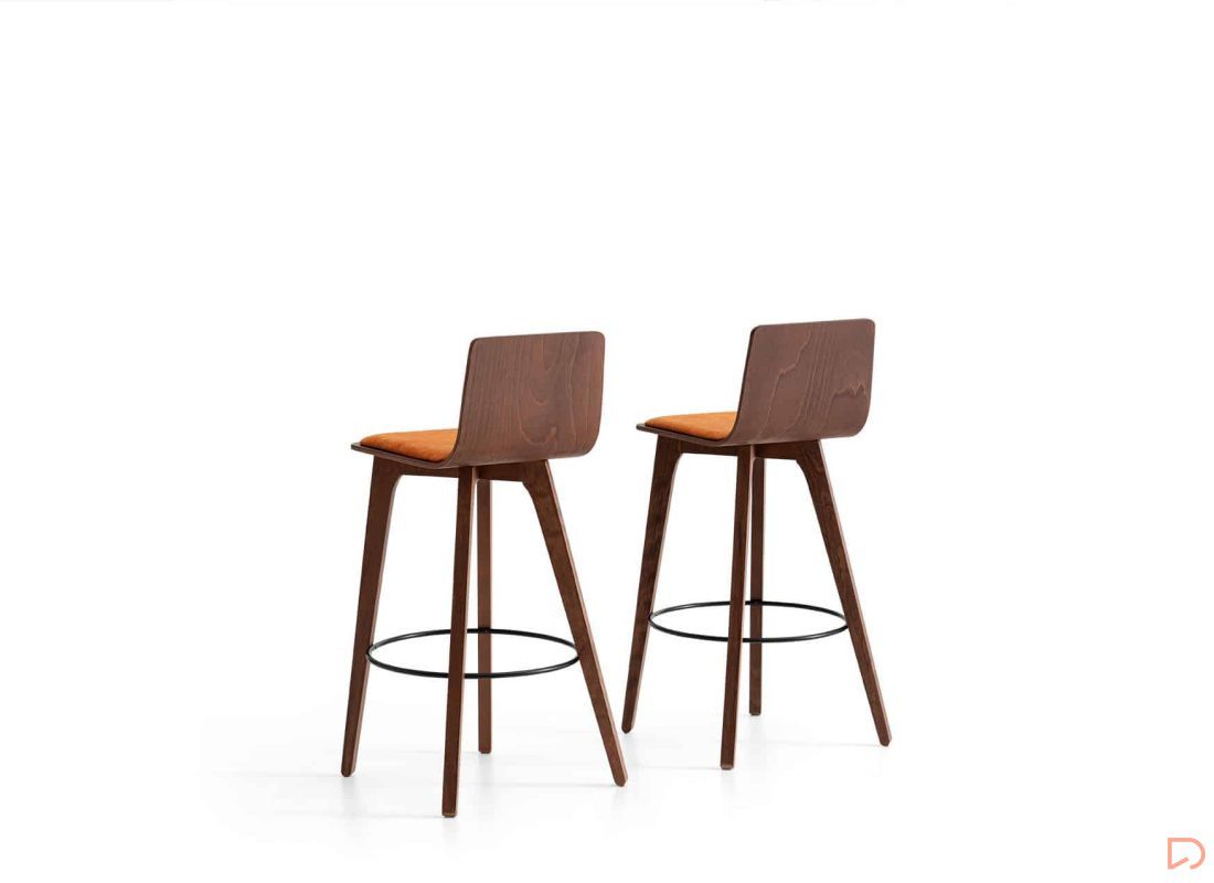 - El taburete de Madera es una manifestación de diseño funcional y estético. Con un asiento y respaldo de madera que destacan el grano natural y la riqueza del nogal, esta pieza aporta un toque de naturaleza y elegancia a cualquier espacio.