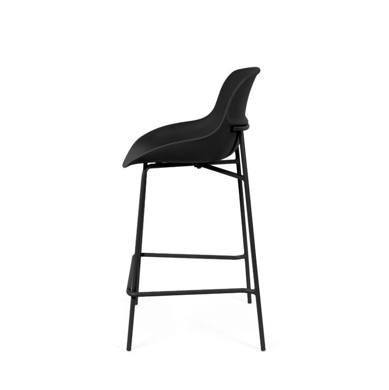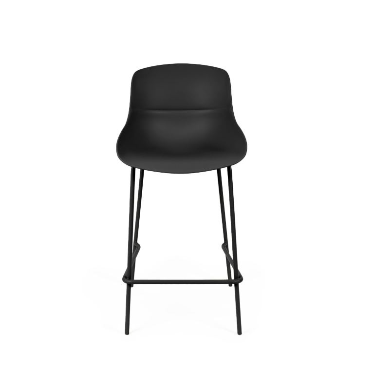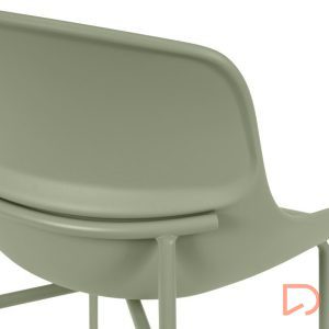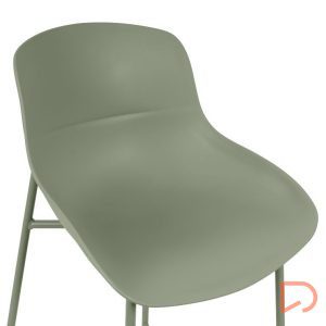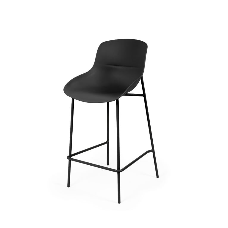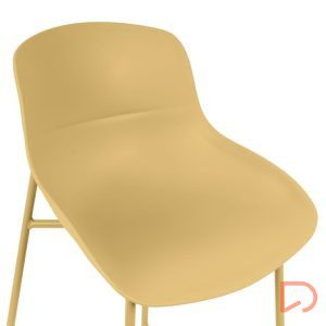 - Su asiento de polipropileno de bordes suaves se posa sobre una estructura metálica esbelta, logrando un equilibrio entre funcionalidad y diseño contemporáneo.