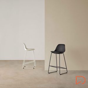 El taburete bajo JAKE es ideal para cocinas o mesas altas, combinando funcionalidad y estilo en cualquier espacio.