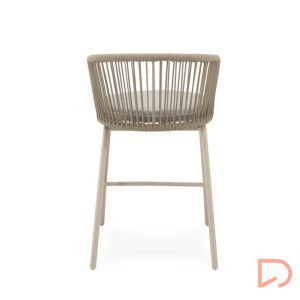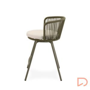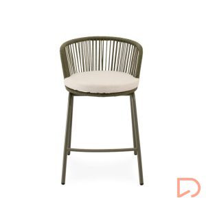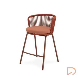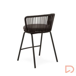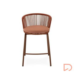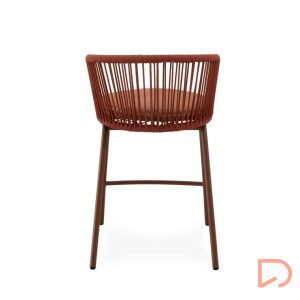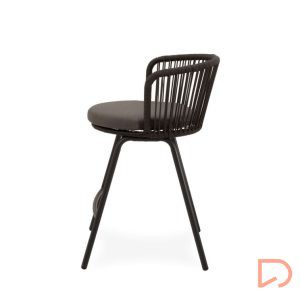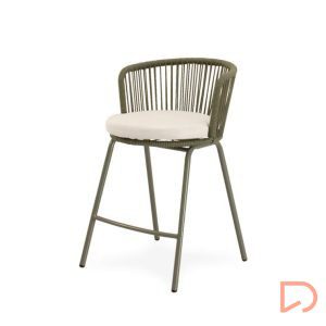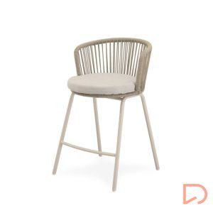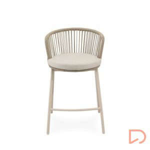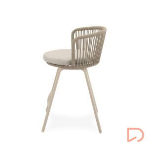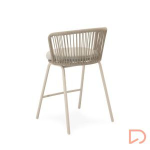 - El taburete PIERRE combina un estilo contemporáneo con un diseño pensado para aportar comodidad y frescura a cualquier espacio exterior. Su respaldo curvo, elaborado en cuerda resistente, presenta un entramado lineal que crea un efecto visual ligero y dinámico. Esta estructura no solo envuelve suavemente la espalda, sino que también permite una ventilación natural, perfecta para los días más cálidos.