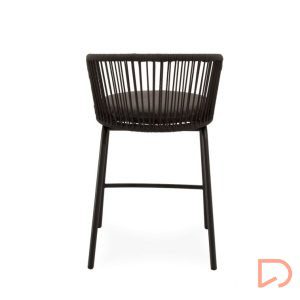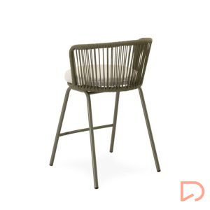 - Las patas de acero especialmente acondicionado para exteriores, añaden estabilidad y un toque moderno, mientras que el asiento acolchado en poliéster proporciona el confort necesario para largas tertulias al aire libre.