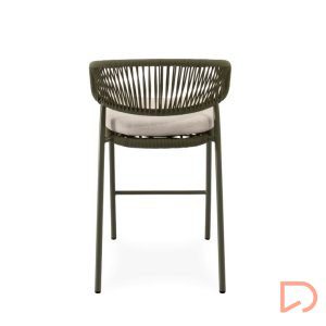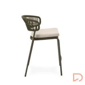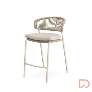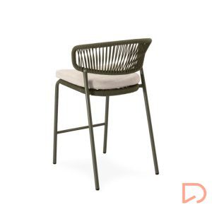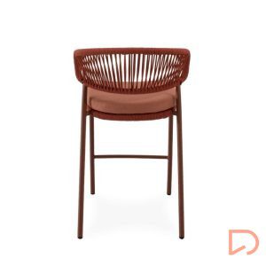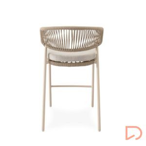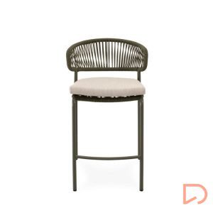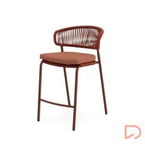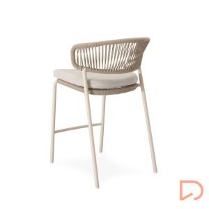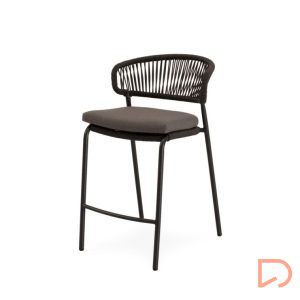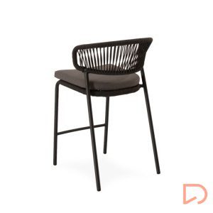 - Las patas de acero con tratamiento exclusivo para exteriores, refuerzan la estabilidad del taburete, mientras que el asiento acolchado en poliéster asegura comodidad en cada uso.