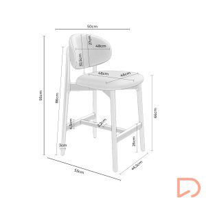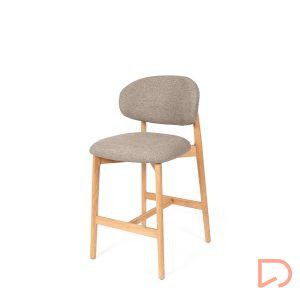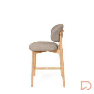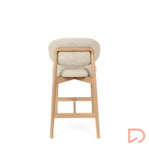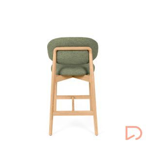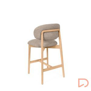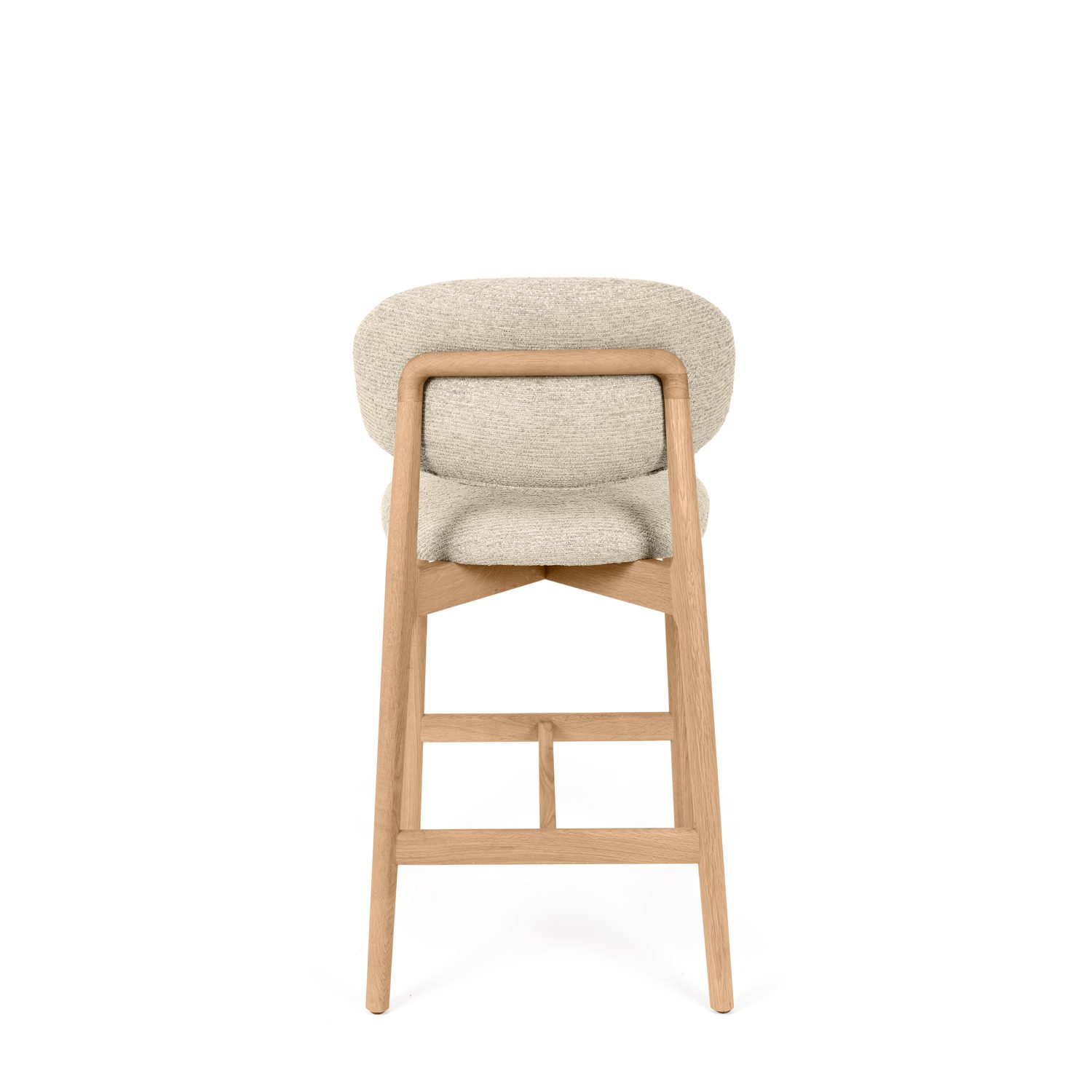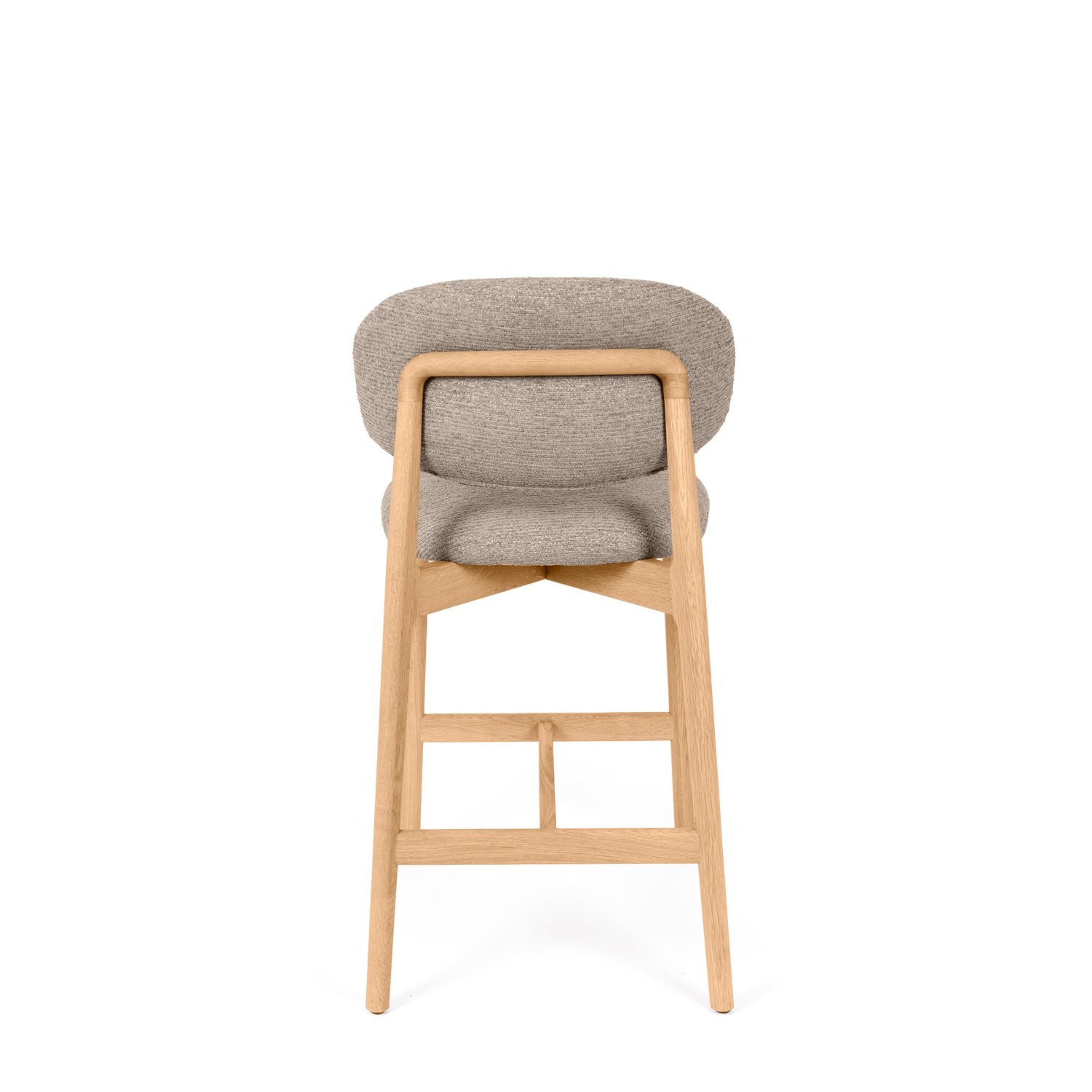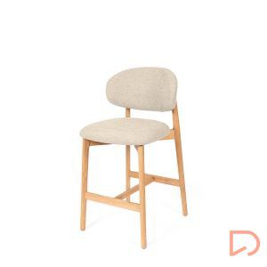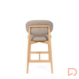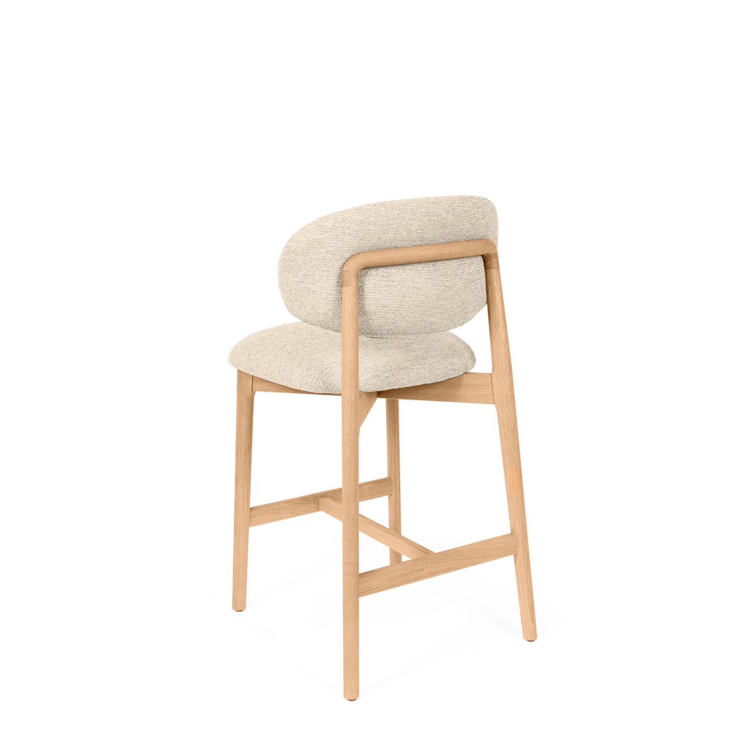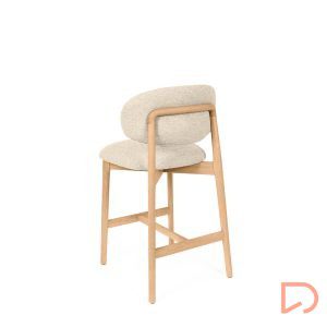 El taburete RENZO destaca por su equilibrio entre diseño, confort y estructura. Su base en madera de haya aporta solidez y calidez visual, mientras que las patas, ligeramente cónicas y unidas por travesaños en cruz, refuerzan la estabilidad y le otorgan un carácter artesanal muy cuidado.