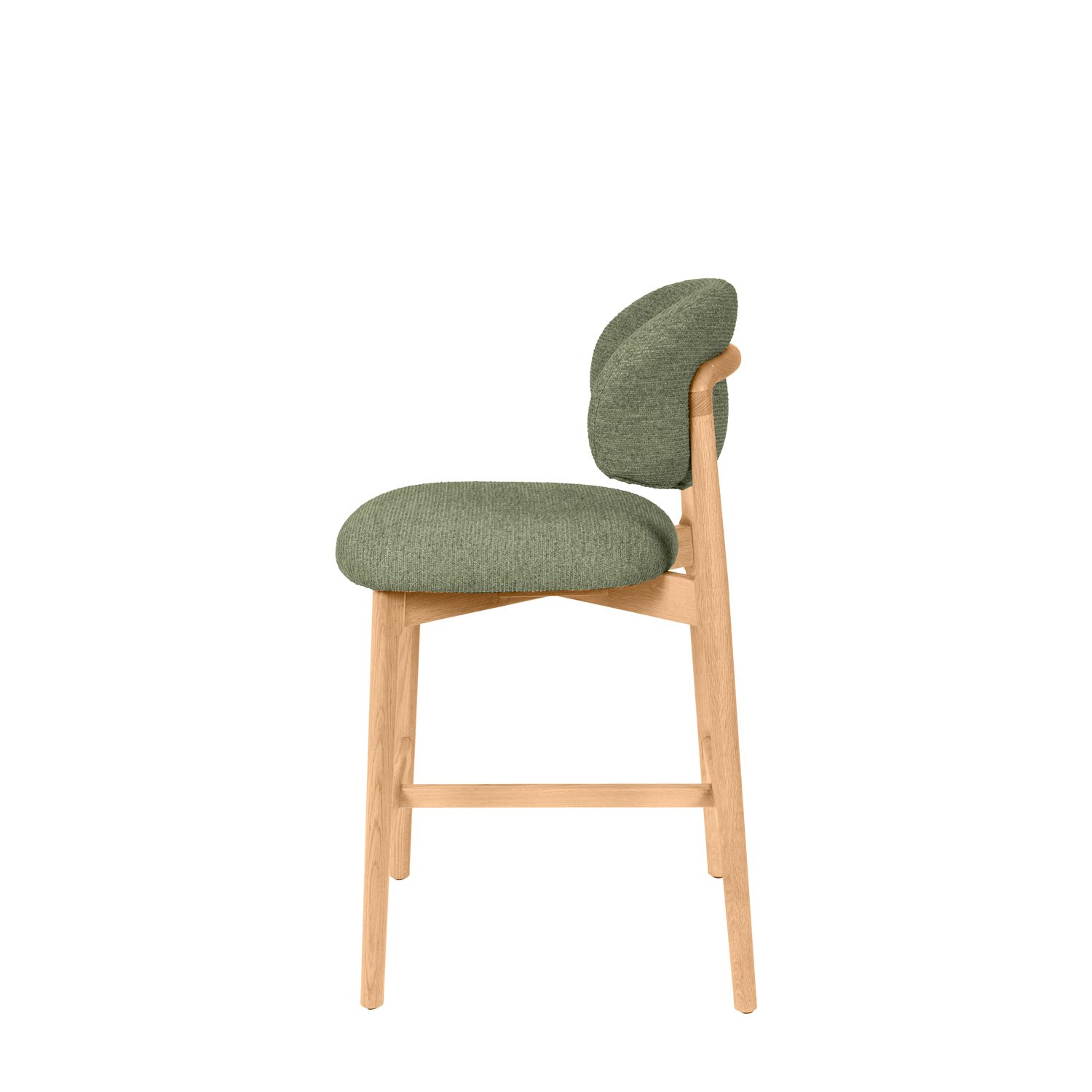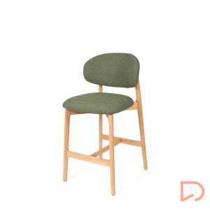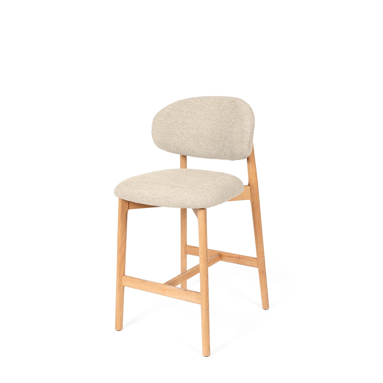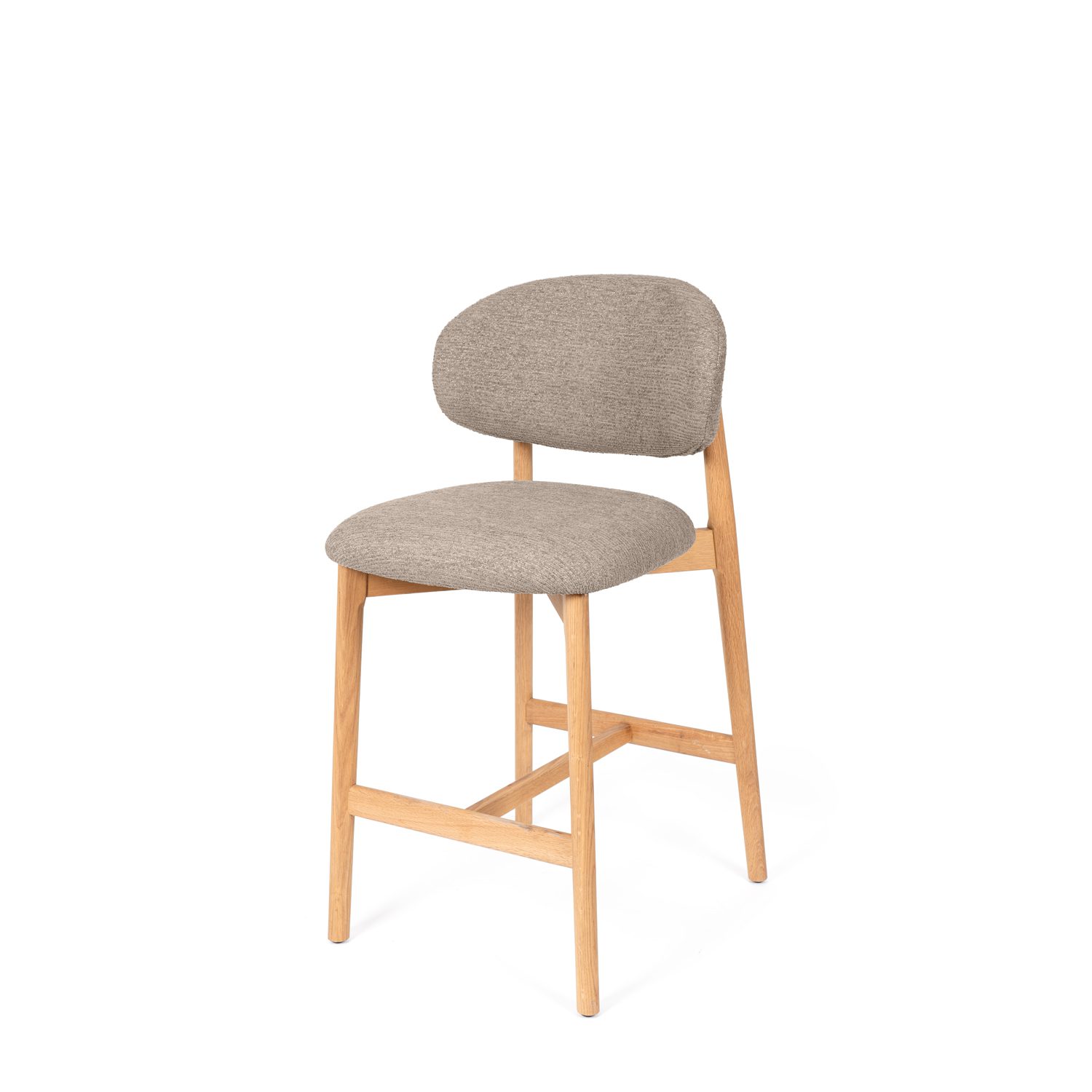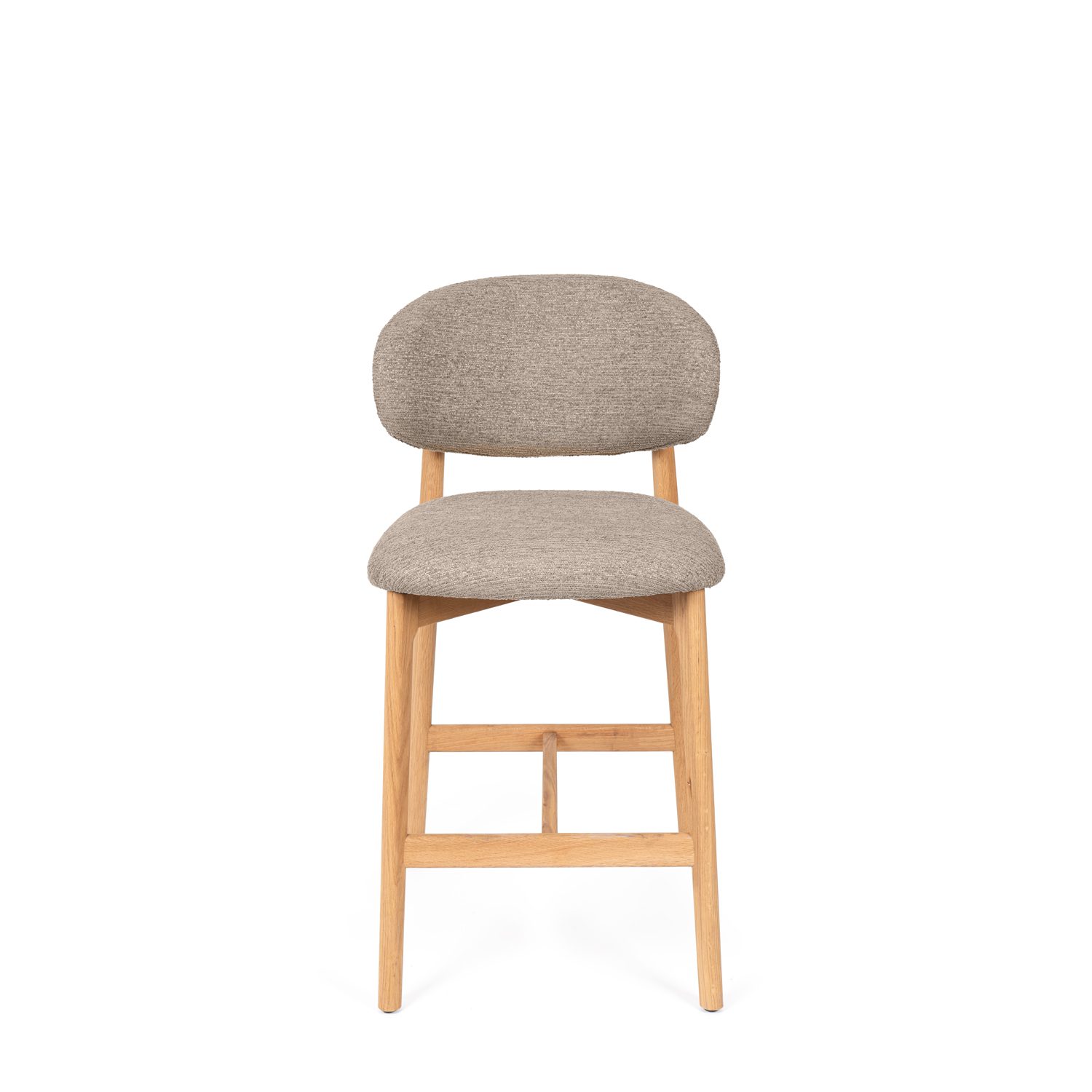 El taburete RENZO destaca por su equilibrio entre diseño, confort y estructura. Su base en madera de haya aporta solidez y calidez visual, mientras que las patas, ligeramente cónicas y unidas por travesaños en cruz, refuerzan la estabilidad y le otorgan un carácter artesanal muy cuidado.