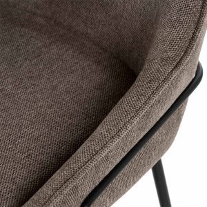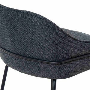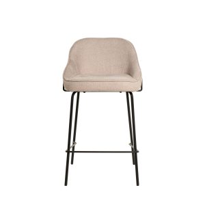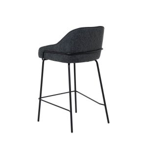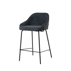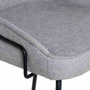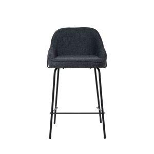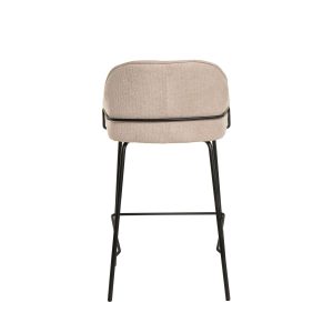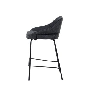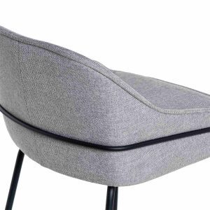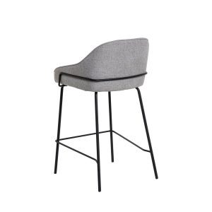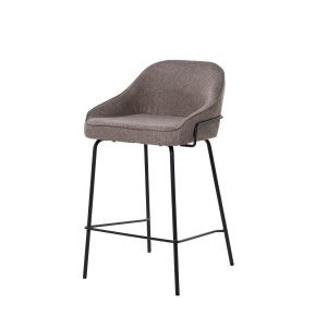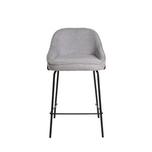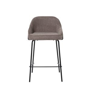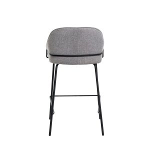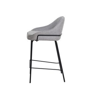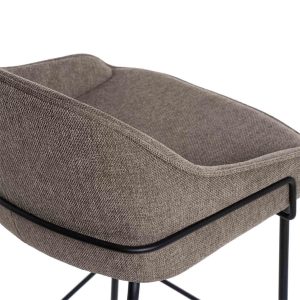 - Tapizado en unos tonos elegantes de poliéster 100% en gris claro, gris oscuro, beige y taupe, con patas y barras traseras/laterales de metal negro, este taburete destaca por su diseño sofisticado, ideal para entornos modernos.