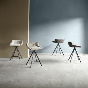 - El taburete GARY incluye la combinación de dos estilos de tejidos diferentes y le confiere un aspecto único.