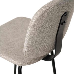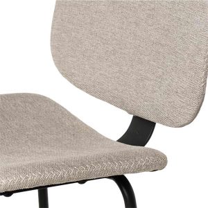 - Está tapizado en diferentes telas de color gris claro, gris oscuro, beige y taupe, de poliéster 100%, que contrasta elegantemente con su estructura metálica negra.