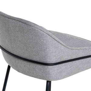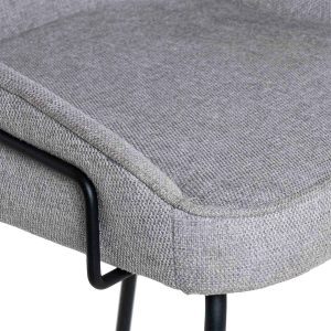 - El asiento está tapizado en tela de color gris claro, gris oscuro, beige o taupe (100% poliéster), proporcionando unos tonos neutros y sofisticados. La estructura y las patas de metal añaden un toque moderno y resistente.