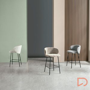- El taburete bajo RAY destaca por su diseño moderno y funcionalidad. Su respaldo alto y ergonómico proporciona un excelente soporte para la espalda, mientras que el asiento acolchado ofrece un confort adicional, convirtiéndolo en la opción ideal para cocinas, bares o áreas de descanso.El tejido en color beige, gris o taupe, confeccionado en 100% poliéster, aporta un aspecto sofisticado y elegante.