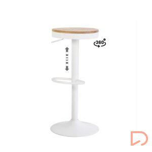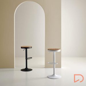 El taburete BARRET destaca por su estilo y funcionalidad. Combina una estructura metálica en color negro o blanco con un asiento de madera, creando un diseño moderno y elegante.