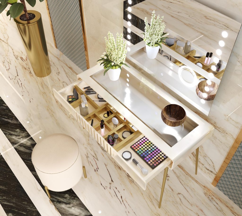Tocadores que aportan elegancia y carácter al momento de cuidado personal, con diseños sofisticados donde estilo y funcionalidad se fusionan.