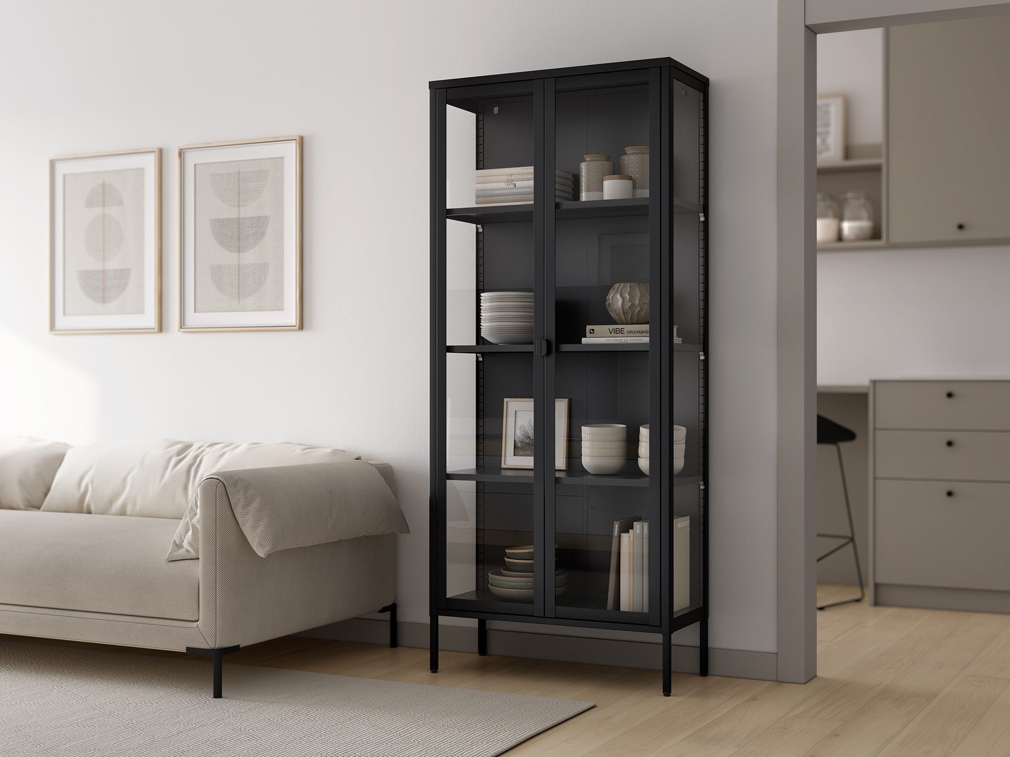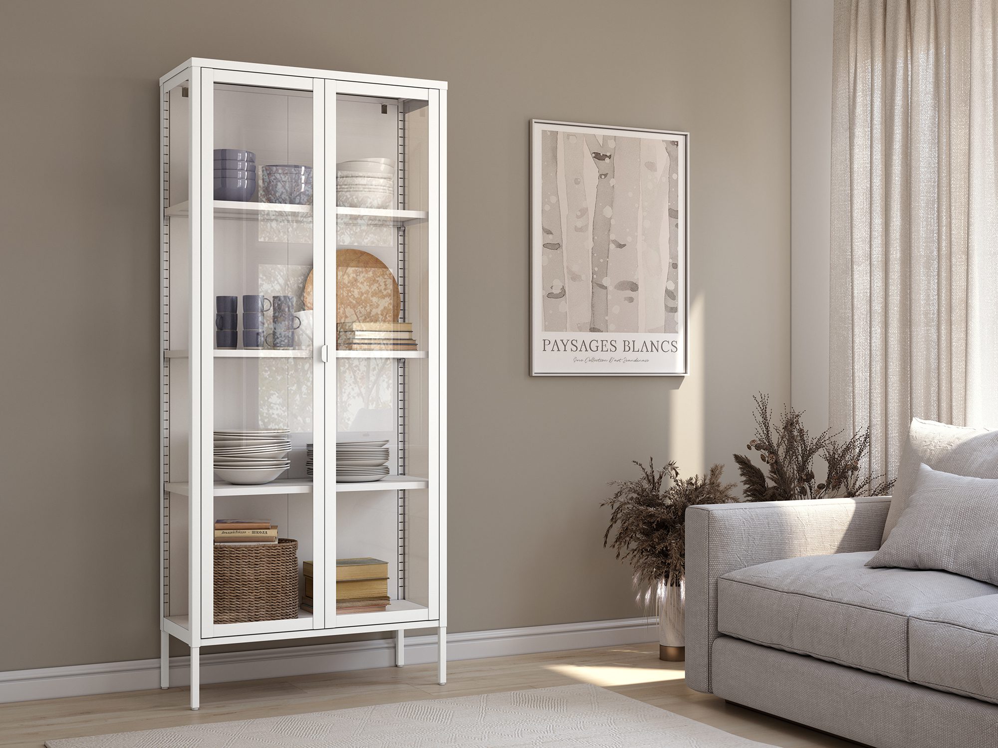 Vitrina Titania metálica con puertas de cristal lacada 80 x 185 x 35 cm
