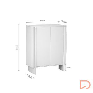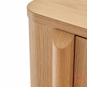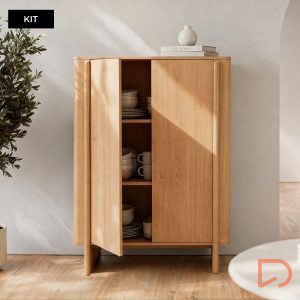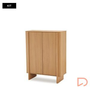 Las puertas, de líneas suaves y continuas, incorporan un sistema de apertura push que mantiene el diseño limpio y sin elementos visibles. En formato mueble kit, está pensado para facilitar el transporte y el montaje, ofreciendo una estructura estable y bien proporcionada una vez instalado.