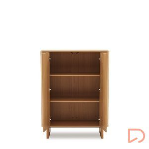 Con una presencia vertical que estiliza el espacio, el aparador alto de la colección SIDNEY se presenta como una pieza elegante y funcional, ideal para optimizar el almacenaje sin sobrecargar el ambiente. Realizado en melamina, su acabado natural deja ver la veta de la madera, aportando luminosidad y una calidez serena que encaja fácilmente en interiores actuales.