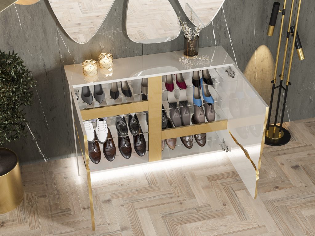 Zapateros funcionales con estilo, que integran diseño y practicidad para mantener ordenados los espacios de entrada de la casa.