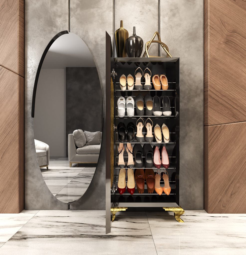 Zapateros funcionales con estilo, que integran diseño y practicidad para mantener ordenados los espacios de entrada de la casa.