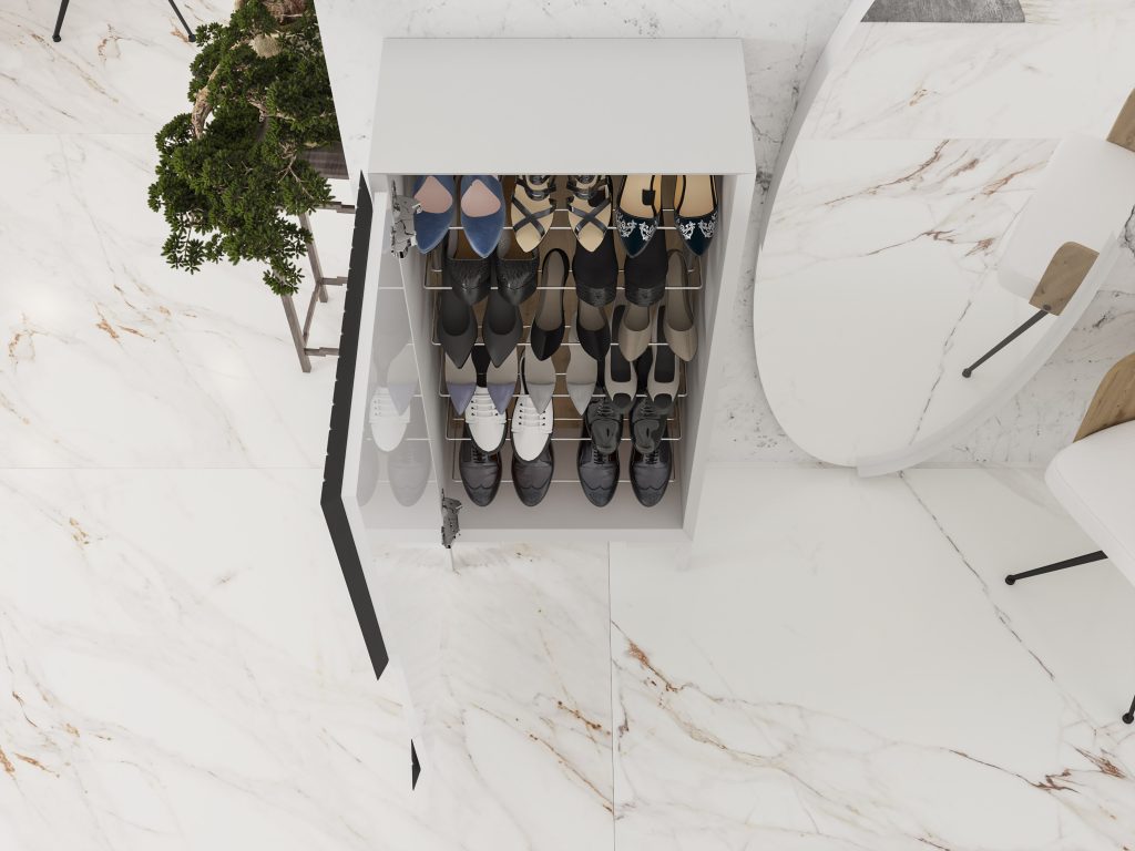 Zapateros funcionales con estilo, que integran diseño y practicidad para mantener ordenados los espacios de entrada de la casa.