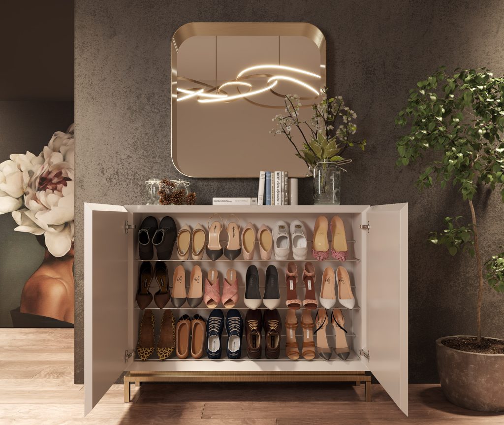 Zapateros funcionales con estilo, que integran diseño y practicidad para mantener ordenados los espacios de entrada de la casa.