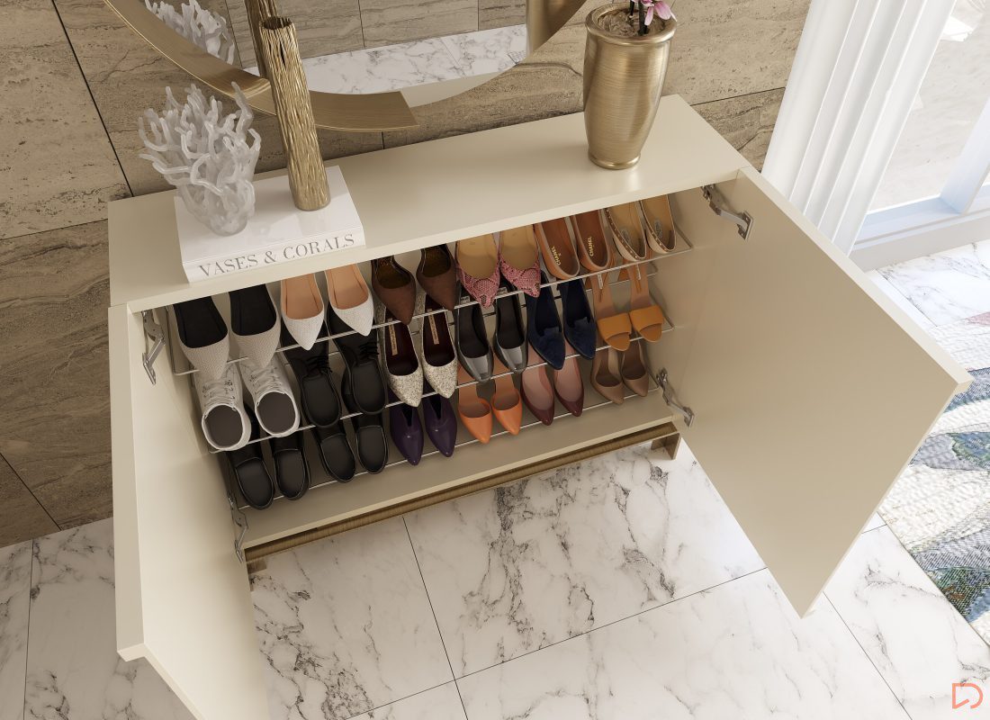 Zapateros funcionales con estilo, que integran diseño y practicidad para mantener ordenados los espacios de entrada de la casa.