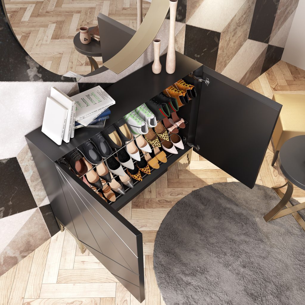 Zapateros funcionales con estilo, que integran diseño y practicidad para mantener ordenados los espacios de entrada de la casa.
