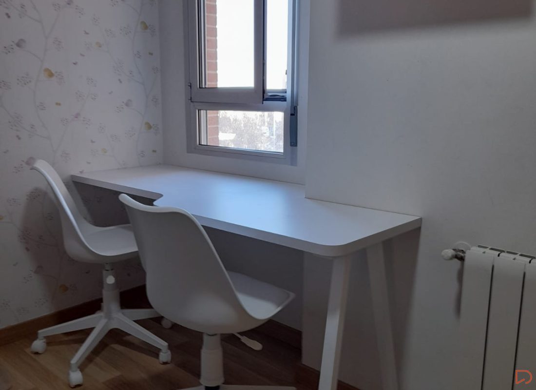 Os presentamos esta zona estudio, hemos incorporado a una habitación pequeña una encimera que esta adaptada al espacio y al pilar.